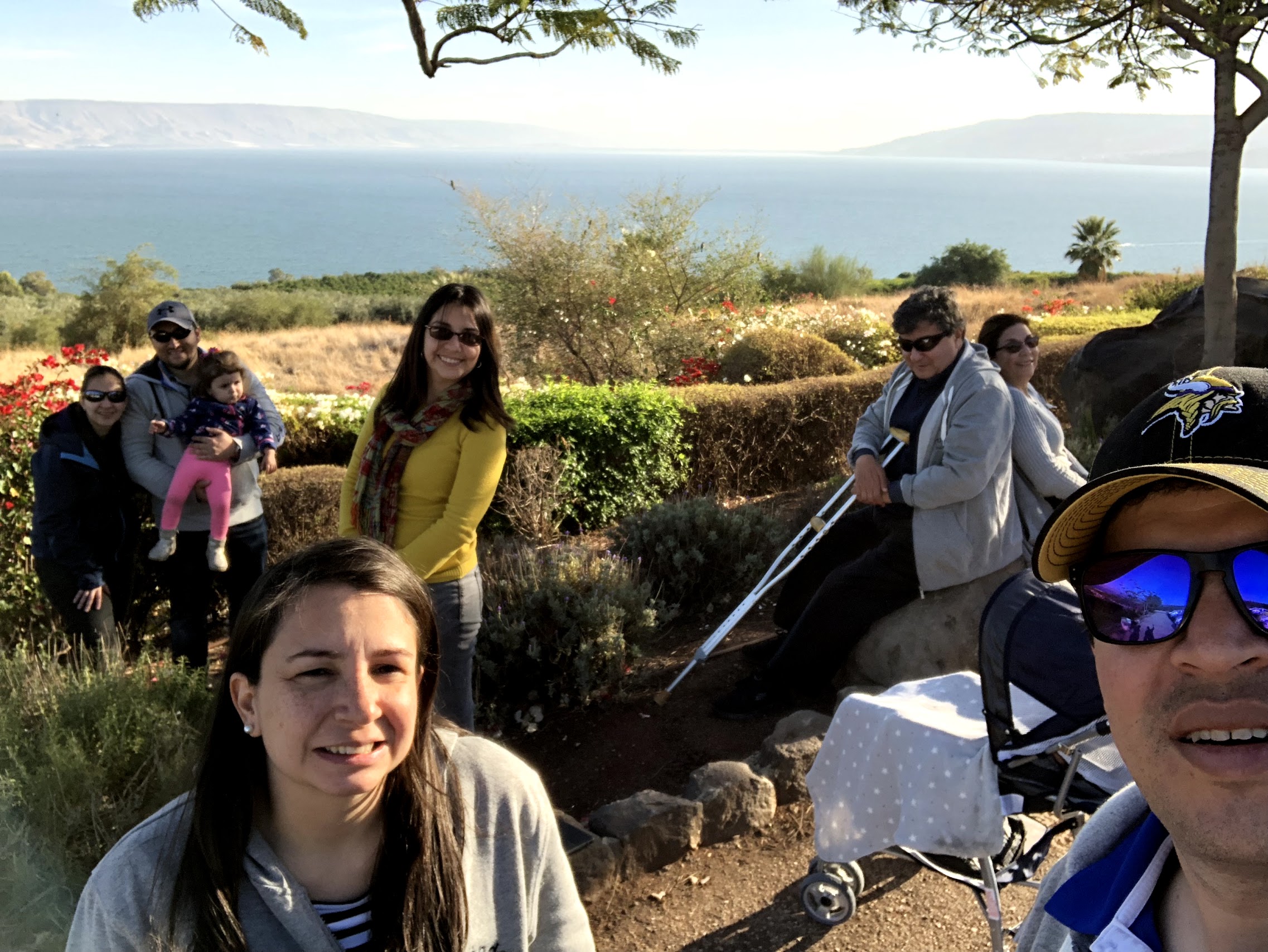 Salimos, compramos algo de comer rápido para poder seguir, y nos dirijimos al Monte de las Bienaventuranzas. Si creímos que ya habíamos tenido suficiente para contemplar, estábamos equivocados. El monte es un lugar místico muy especial. Al entrar nos quedamos tal vez una hora, oyendo las Bienaventuranzas, leyendo un poco de historia, y platicando entre todos.